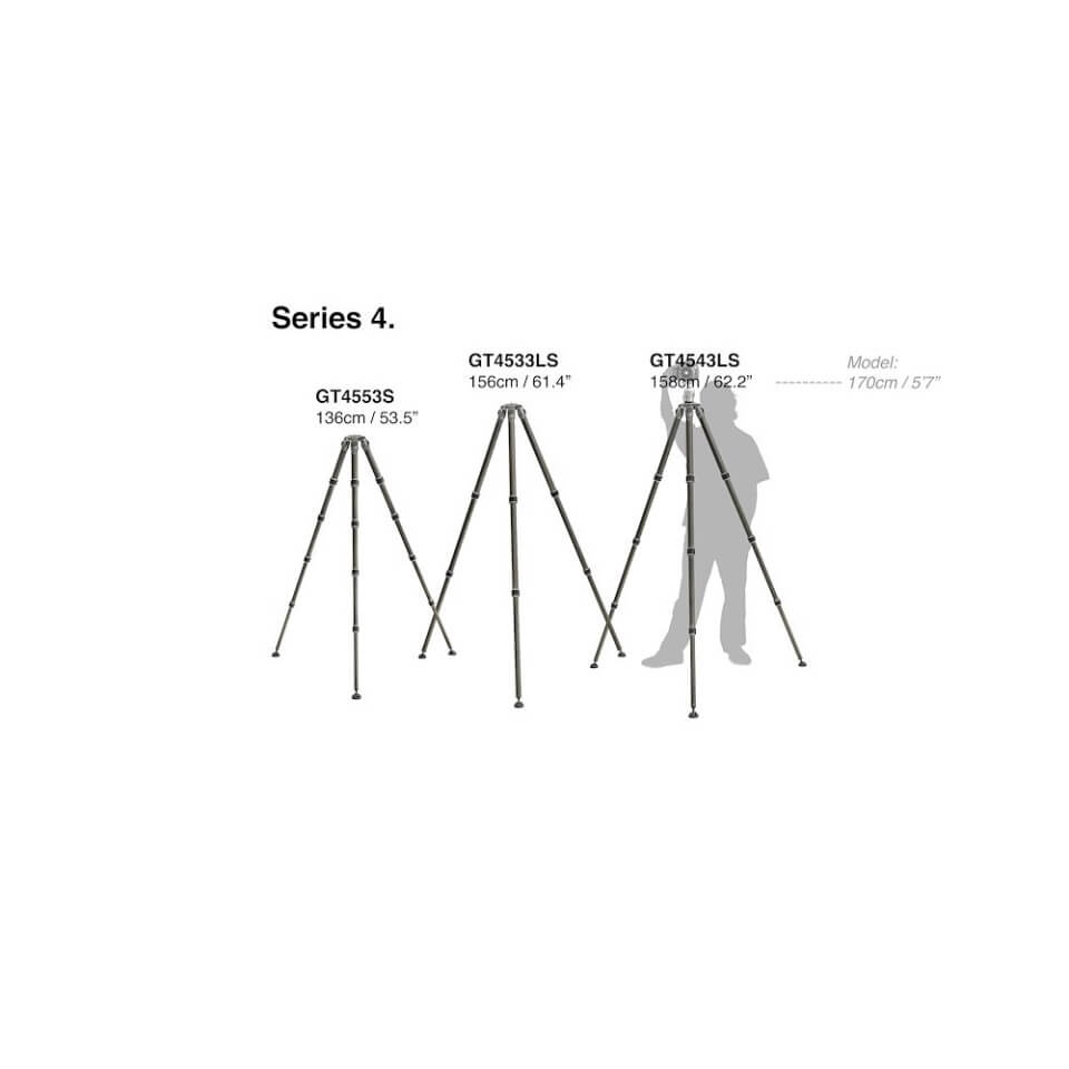 Within the Series 4 line the GT4543LS is given the "Long" designation as it can extend from a minimum height of 3.9", to a maximum height of 62.2", all while maintaining an impressive weight capacity of 61.7 lb. Incorporating Gitzo's patented carbon eXact tubing, the GT4543LS sports maximum rigidity while keeping its weight to an absolute minimum. Weighing just 5.2 lb allows the tripod it is easily carried or transported in the studio or out in the field. It's folded length of just 24.0" makes storing or traveling with the tripod easy and convenient.