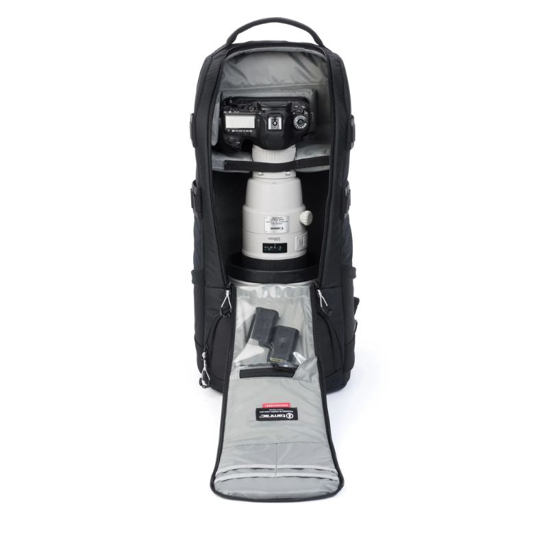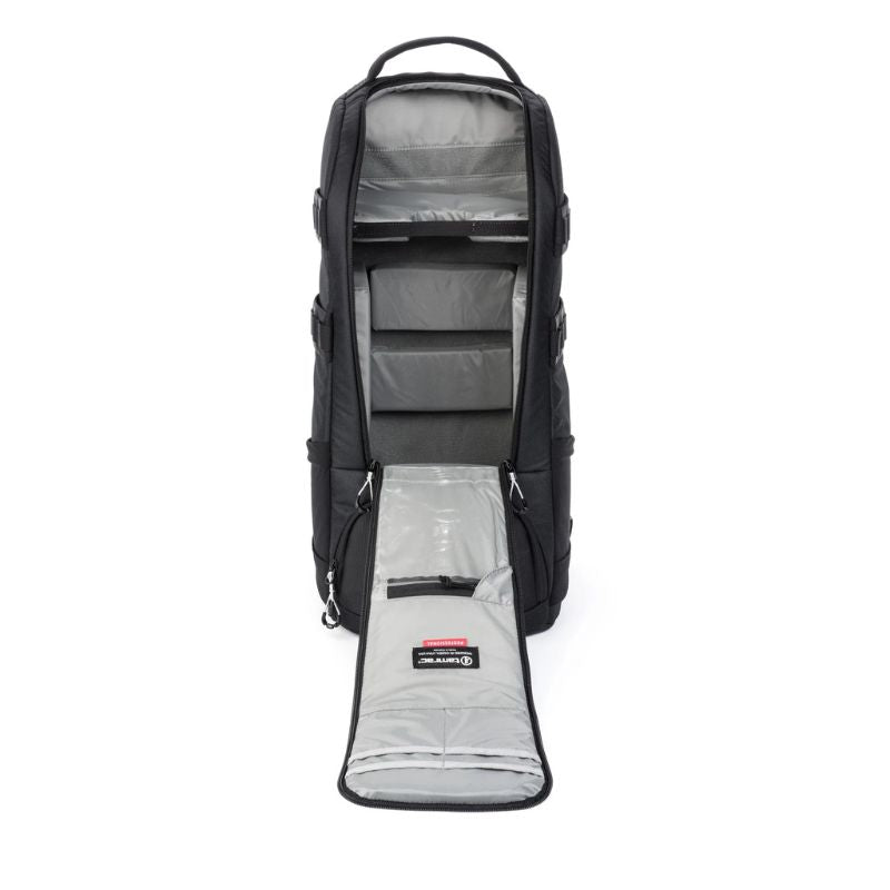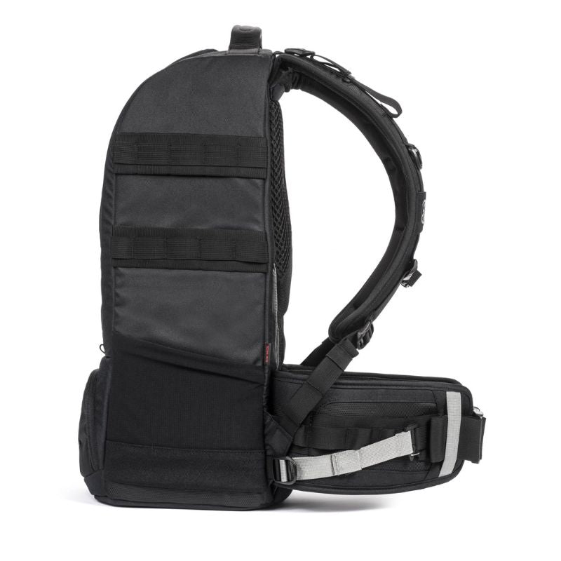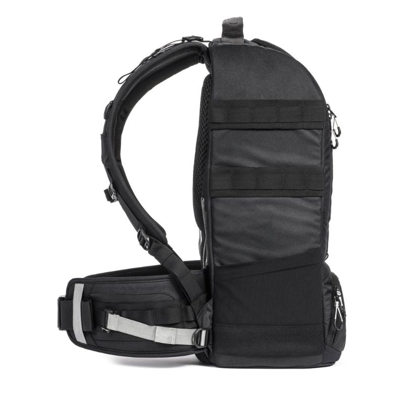 The Anvil is designed from start to finish using over 10 different optimized foams to achieve the perfect balance of weight and protection. The Anvil backpack is strong and durable, yet very lightweight thanks to the engineered materials. Use the quick release strap to carry your tripod. Comfortable airflow straps and a removable Arc and MOLLE compatible hip belt system make it easy to carry any amount of gear. The Anvil Super 25 is designed to carry lenses up to 800mm, or lenses up to 500mm attached to a professional SLR camera with a battery grip.