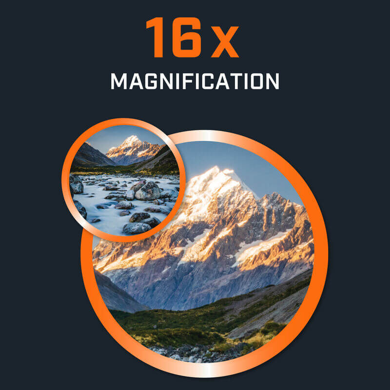 - 16 倍高放大倍率可以詳細觀察遠處的物體,如動物、玩家和建築細節