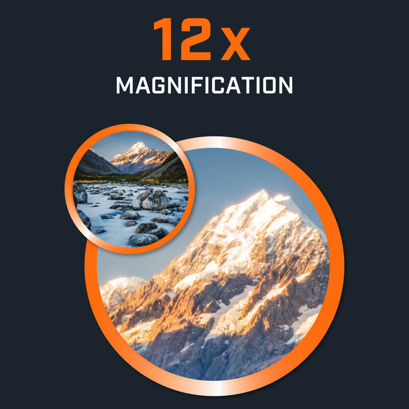 - 強大的 12 倍放大倍率可對動物、鳥類和野生動物等遠處物體進行詳細觀察