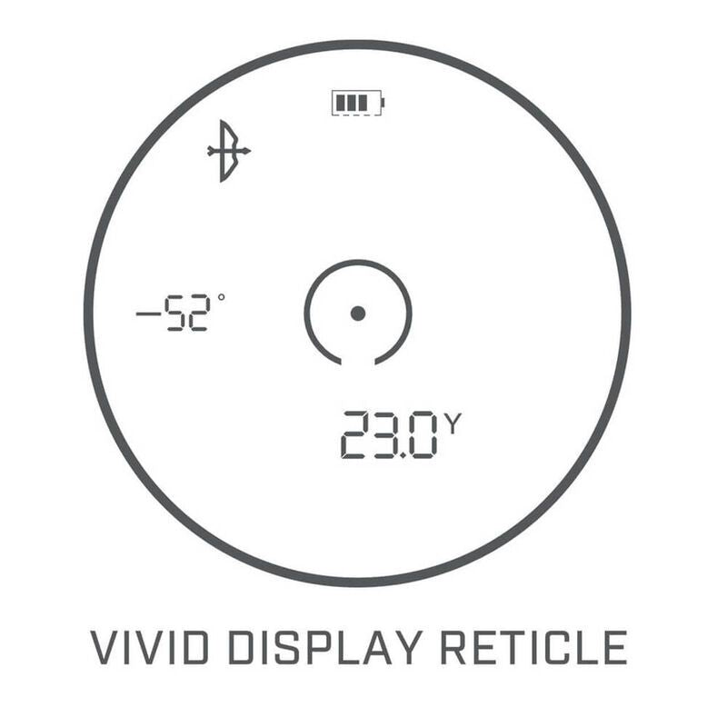 生動的顯示十字線使測距變得容易。透過顯示碼數、角度、電池壽命和測距模式讀數,您可以放心地測距物體。
