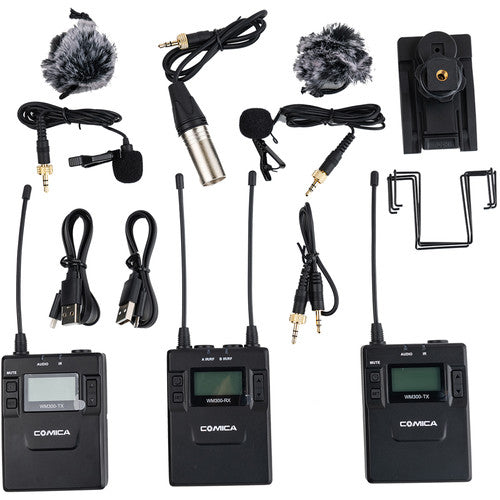 Comica 2 人攝像頭無線麥克風系統,帶可充電電池 (CVM-WM300A)