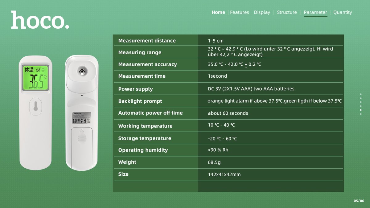 hoco. 非接觸式紅外線探熱槍 FD-01MD [1 年保養]