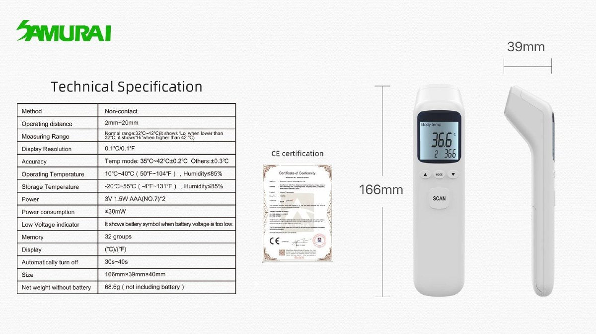 Samurai 新武士 非接觸式紅外線探熱槍 YS-ET03 [1 年保養]