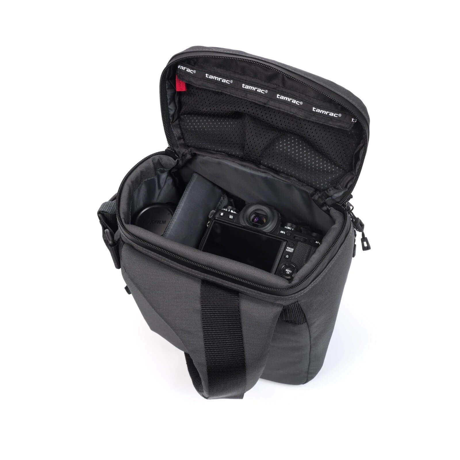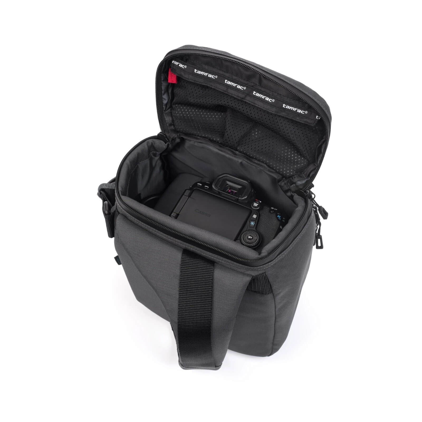 - 足夠大,可容納 DSLR 或全尺寸無反光鏡,連接變焦鏡頭、額外鏡頭和閃光燈