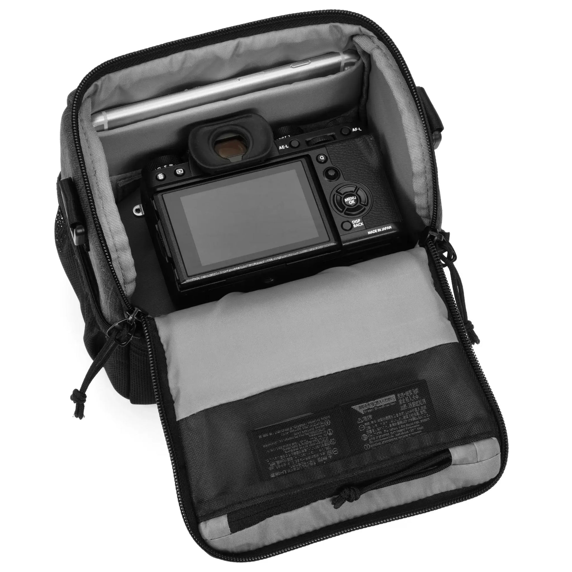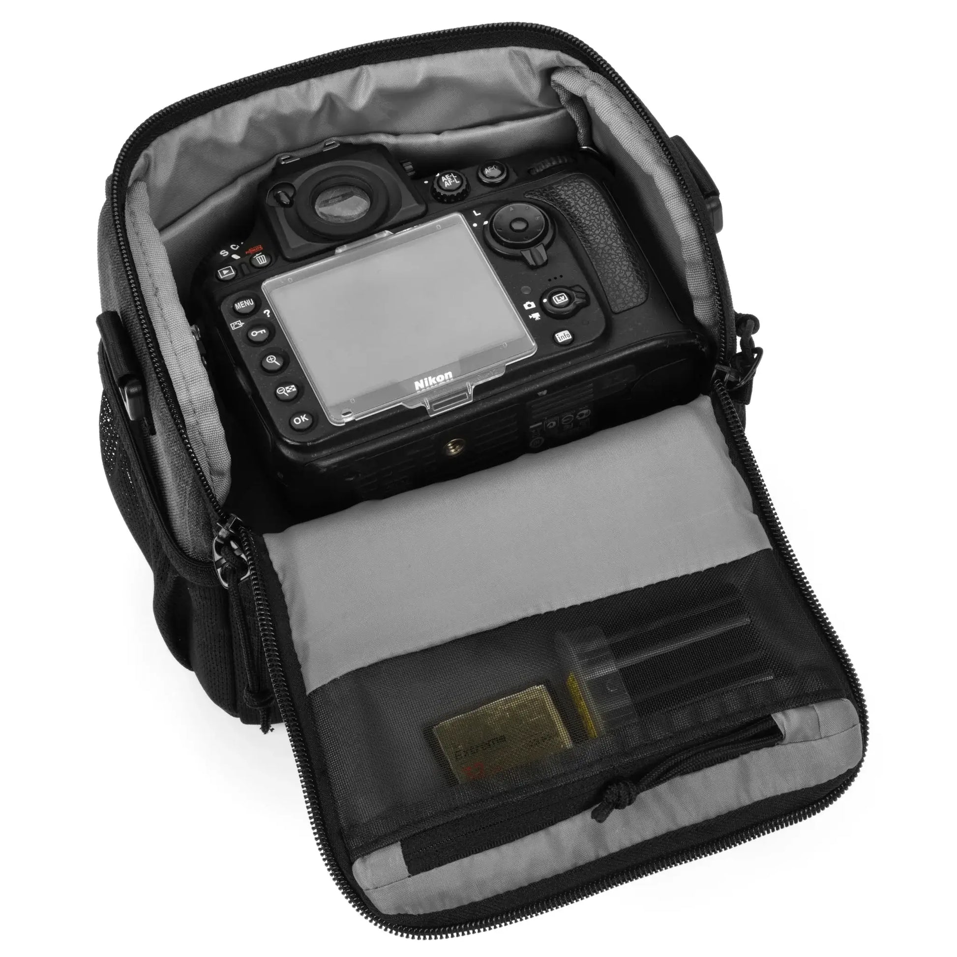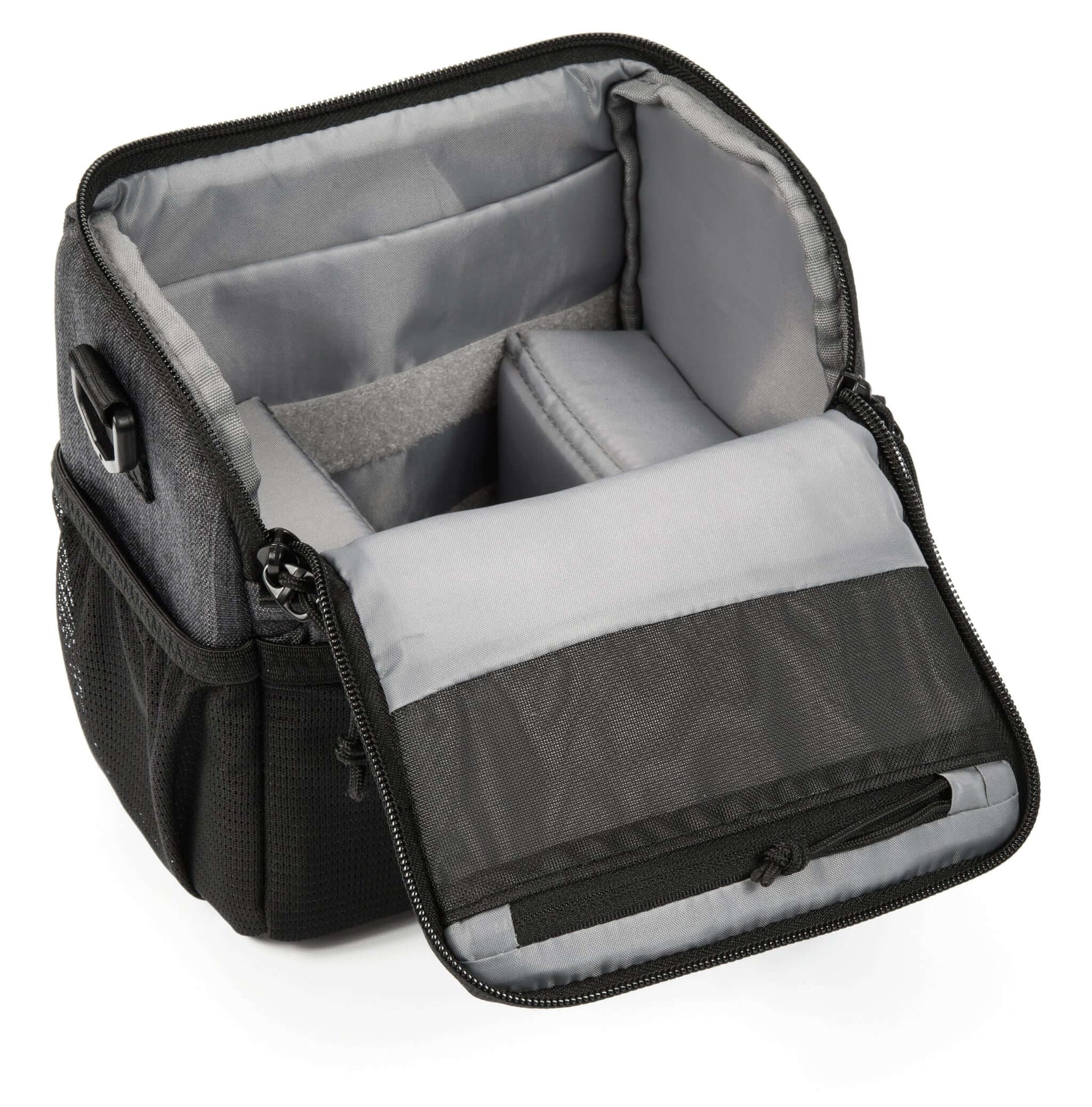 - 可調整的隔板可保護額外的鏡頭和閃光燈裝置
