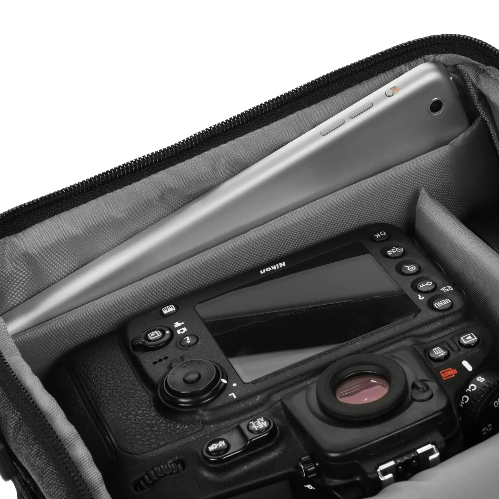 - 可調整的隔板可保護額外的鏡頭和閃光燈裝置